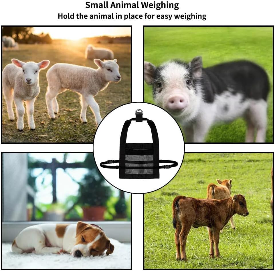 【Thoughtful design】The weight of livestock is equipped with d-shaped metal ring buckle for easy hanging on the scale, and the two sides of the scale sling have adjustable shoulder straps and plastic buckles for easy fixing of the legs of small animals to prevent them from falling off during weighing.