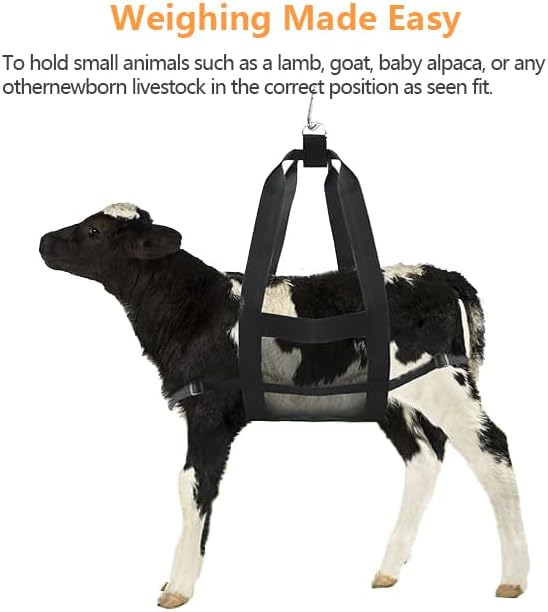 【Easy to Use and Clean】: Calf scale hanging weight sling easy to use, adjustable straps can weight more sizes of animals, buckle design easy to operate. The hang sling supports hand wash and machine wash, more convenient.