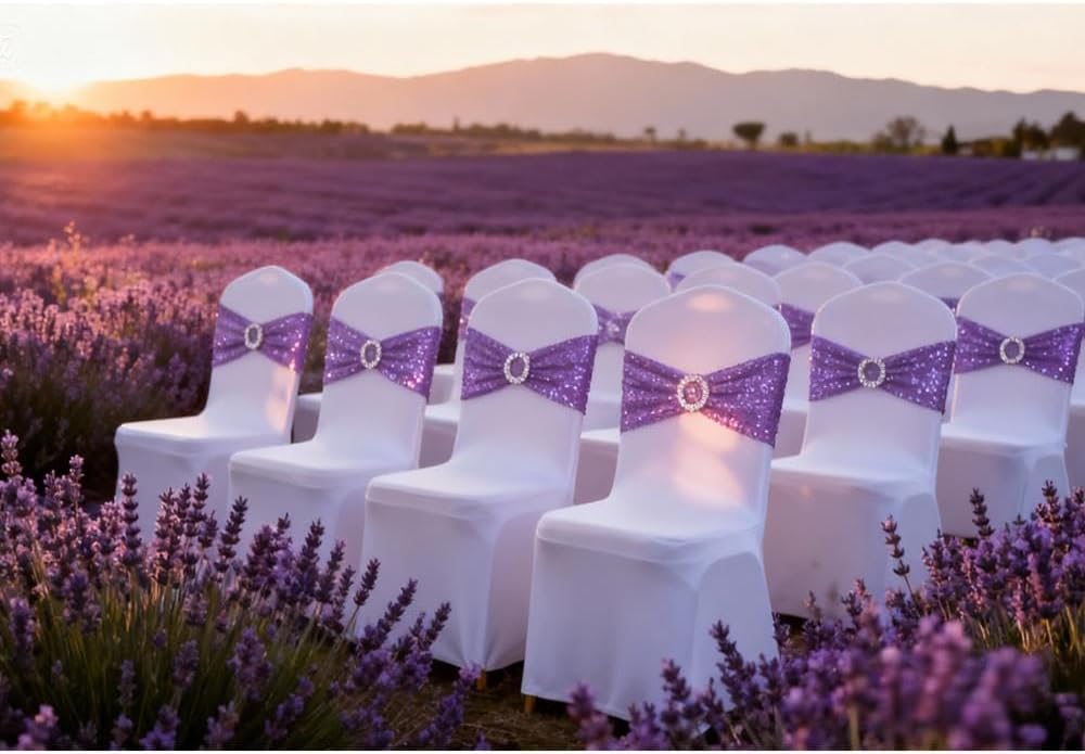 Easy to Set Up & Care:Just simply stretch silver chair sashes and fit it on the back of chair, needn't to tie the bow knot. Silver chair bows sashes can get your chairs out of dullness. The silver sashes for chair covers an only be hand washed. Silver spandex chair sashes can be reused after your event.