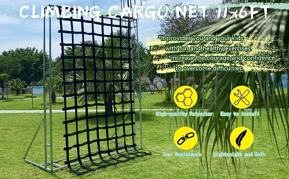 【Set Up In Minutes】- This climbing net includes multiple carabiner hooks for attaching to swing set, jungle gym, play set or other playground equipment.Get Kids Active, Not Addictive To a Screen.