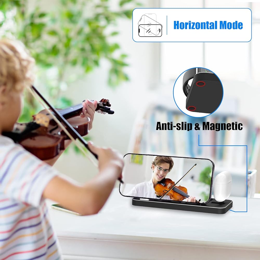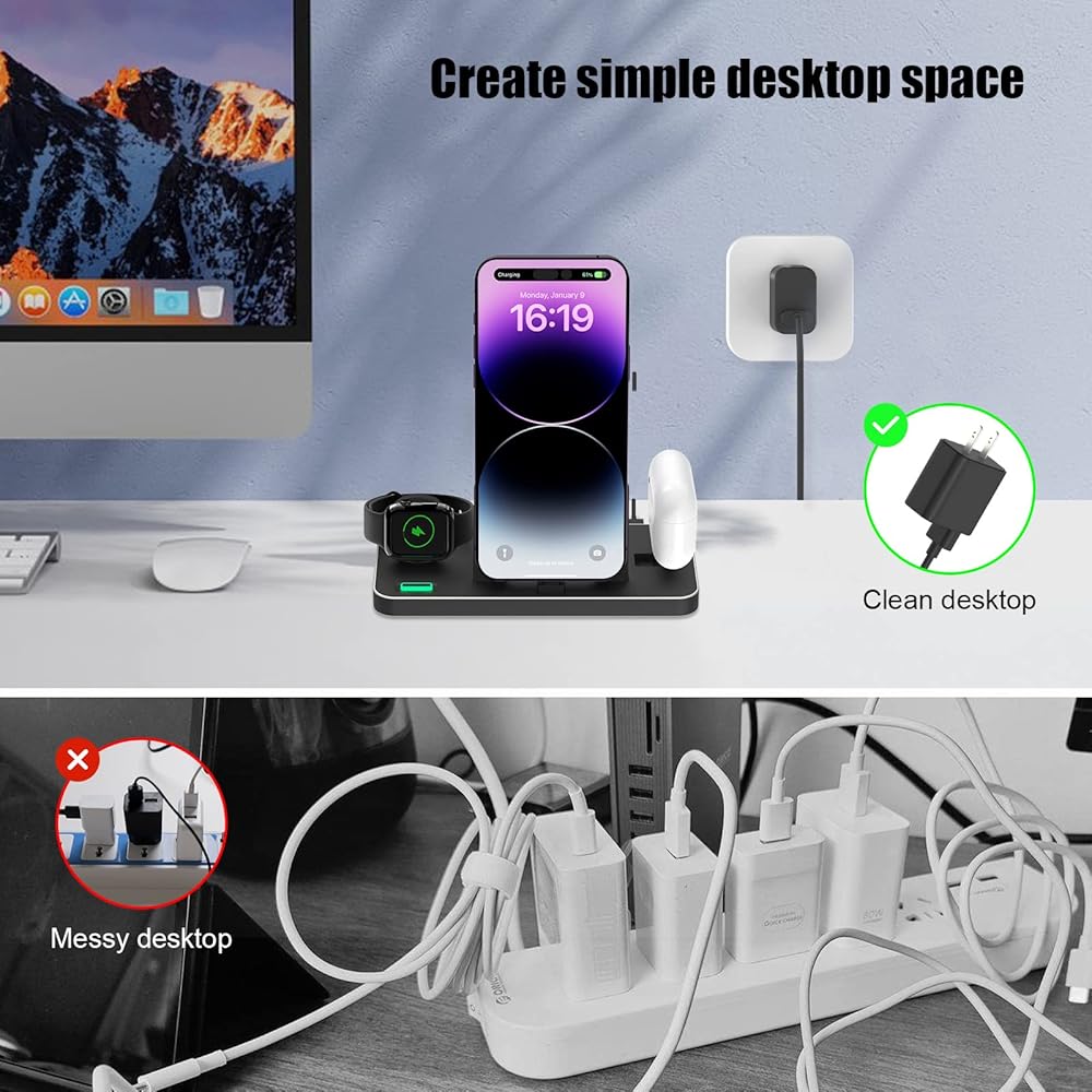 ⚡【Fast & Integrated Charging】This wireless charger combines iphone charging cable, iwatch charging cable, and airpods charging stand as one. It can charge 3 devices at the same time. With a charging head and 1.2M type-c charging cable, no additional chargers and charging cables, you only need one cable to charge multiple devices at the same time, allowing you to get rid of the trouble of wire clutter, so you keep your desktop neat and clean.