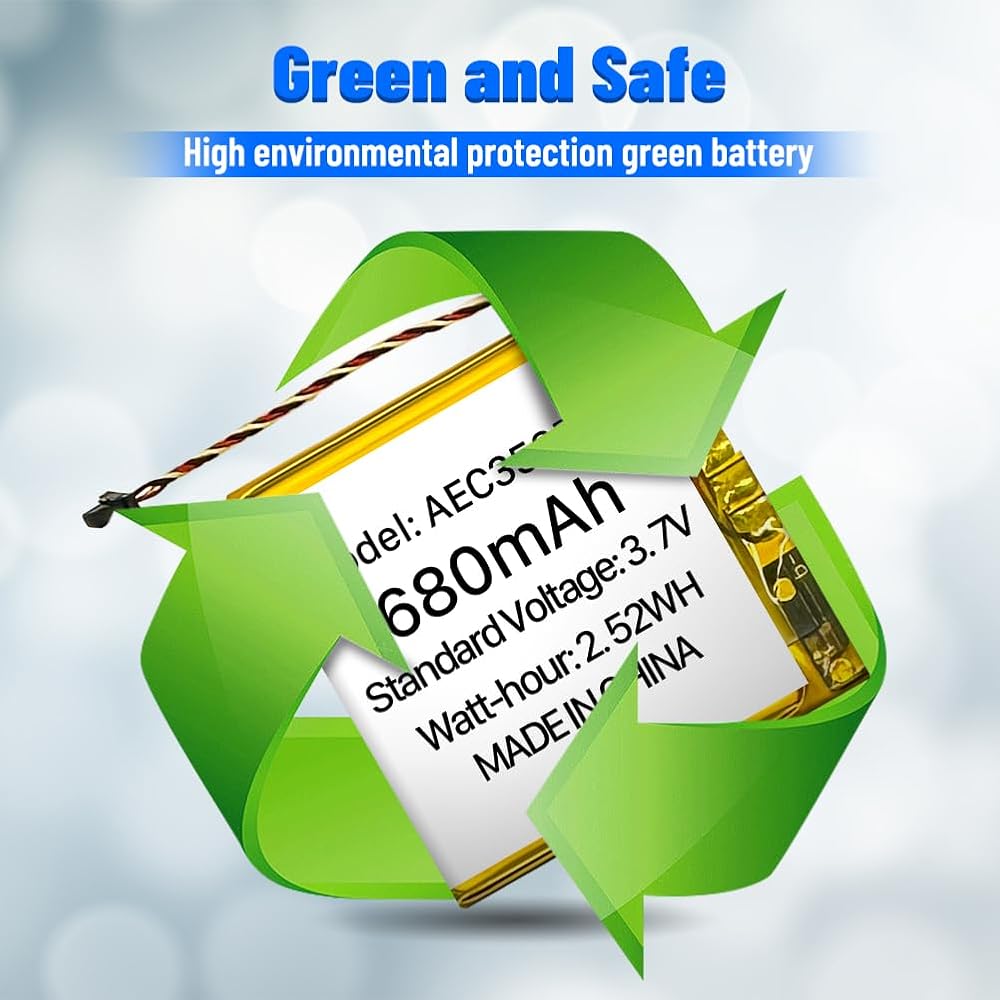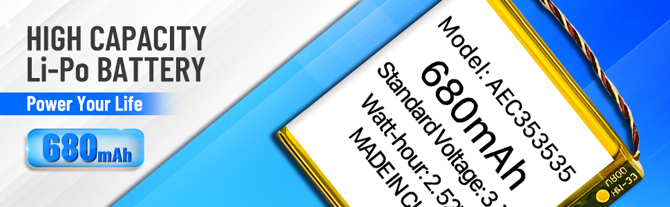 ♛【Great A+ Battery Cells】: This Upgraded AEC353535 battery replacement Capacity: 680mAh, Battery type: Li- Polyme, Watt-hour: 2.52Wh, Voltage Output: 3.7V.