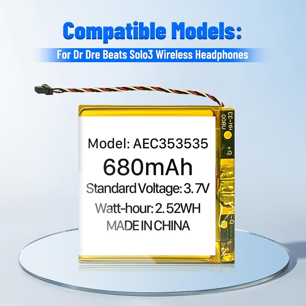 ♛【Battery Compatible Model】: This high capacity AEC353535 battery compatible Beats Solo 2 、Solo 3 Wireless Headphones Battery.