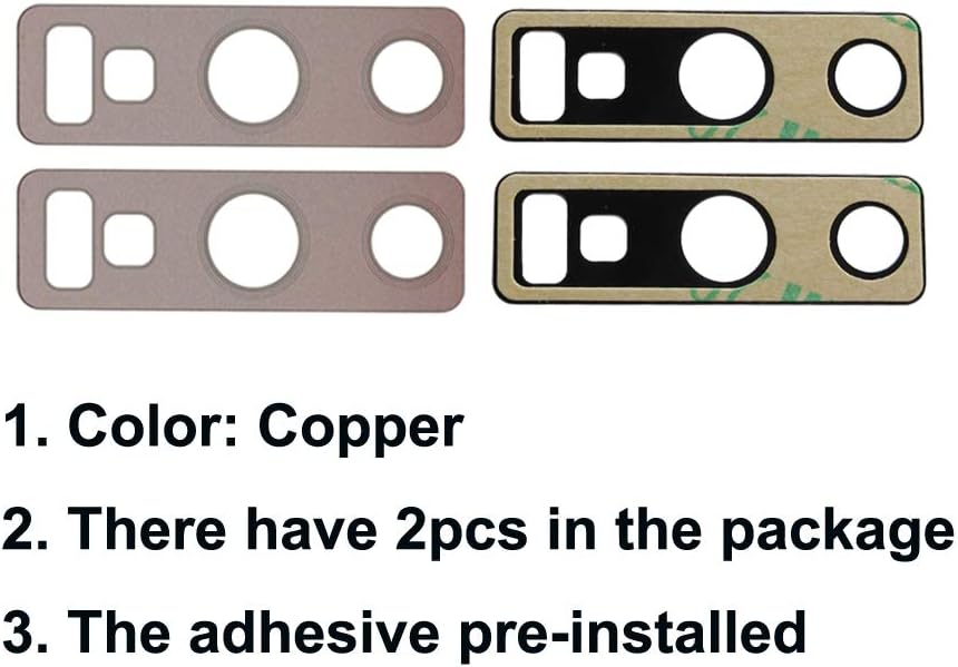 【2pcs galaxy note 9 camera glass lens】 There have 2pcs note 9 back rear camera glass lens replacement included in the package , the color of galaxy note 9 camera glass lens is copper.