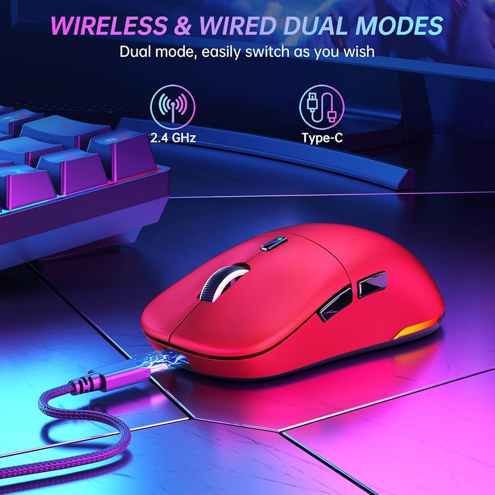 26000- DPI E-SPORTS SENSOR: Best-in-class PAW3395 optical sensor with flawlessly tracks movement with zero smoothing, this gaming mouse wireless features up to 26000 DPI and100-500hz rate rolling, allowing for crisp response and pixel-precise accuracy. Setting your gaming performance on fire, ensuring you always stay one-step ahead in your game!