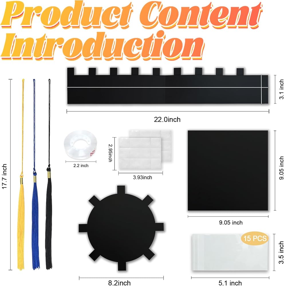 🎓【package you received】Includes a card that can be assembled into a graduation hat, a black foldable card, a graduation wicker, a roll of self-adhesive tape and 15 plastic bags.Imagine your friend face when he opens the box. It will be an unforgettable moment.