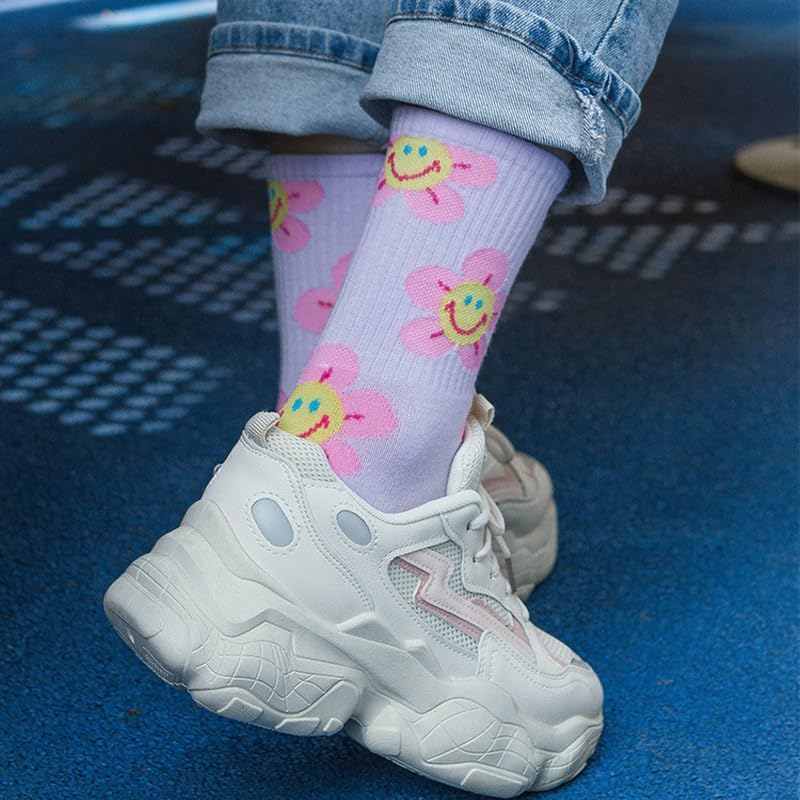 Athletic Style: Inspired by colorful line elements, these novelty skateboard socks exhibit a unique tie-dye style. Each pair resembles a piece of artwork, with lines interweaving in a casual yet orderly manner, creating a vibrant visual effect. These men fun socks are full of fashion and personality, showcasing your distinct taste and style. The dynamic combination of colorful lines adds liveliness and interest to your outfit, making you stand out in the fashion scene.