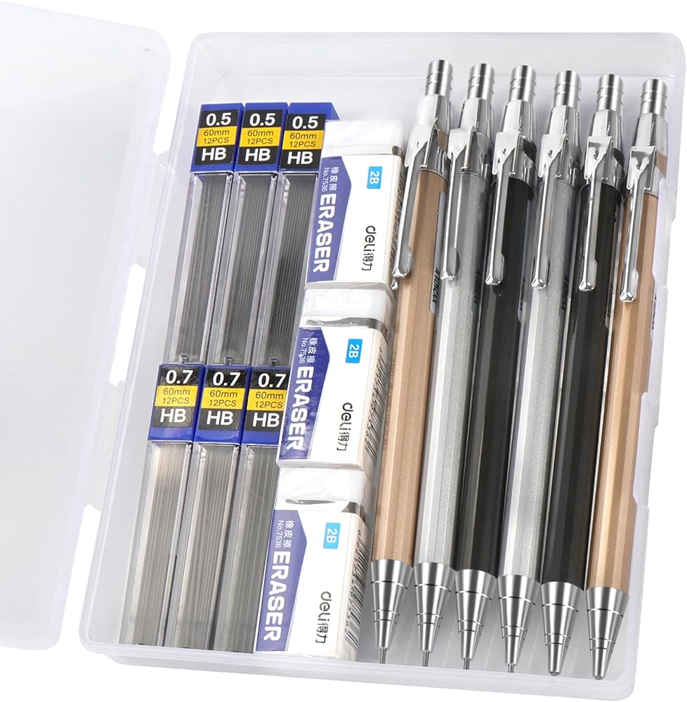[Package Includes]: You will receive a box of 6pcs metal mechanical pencils, 6 tube 0.5 & 0.7mm lead refills, 3pcs erasers