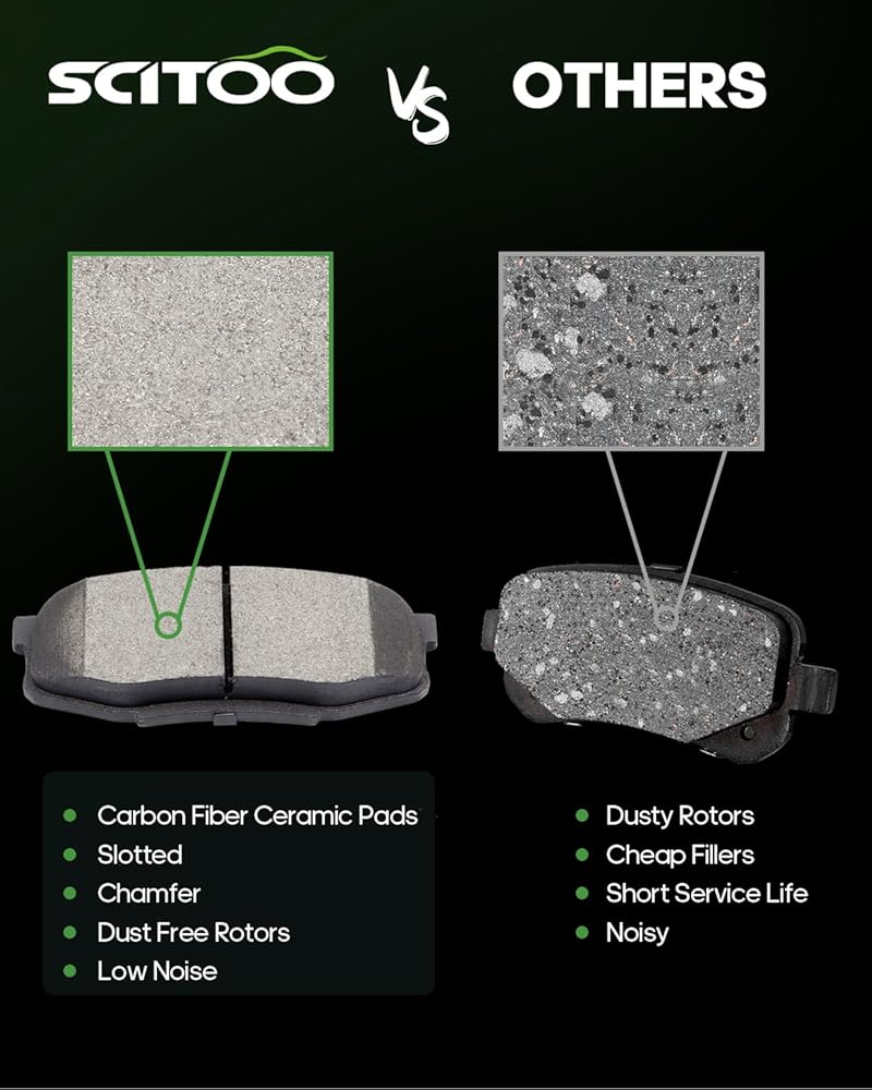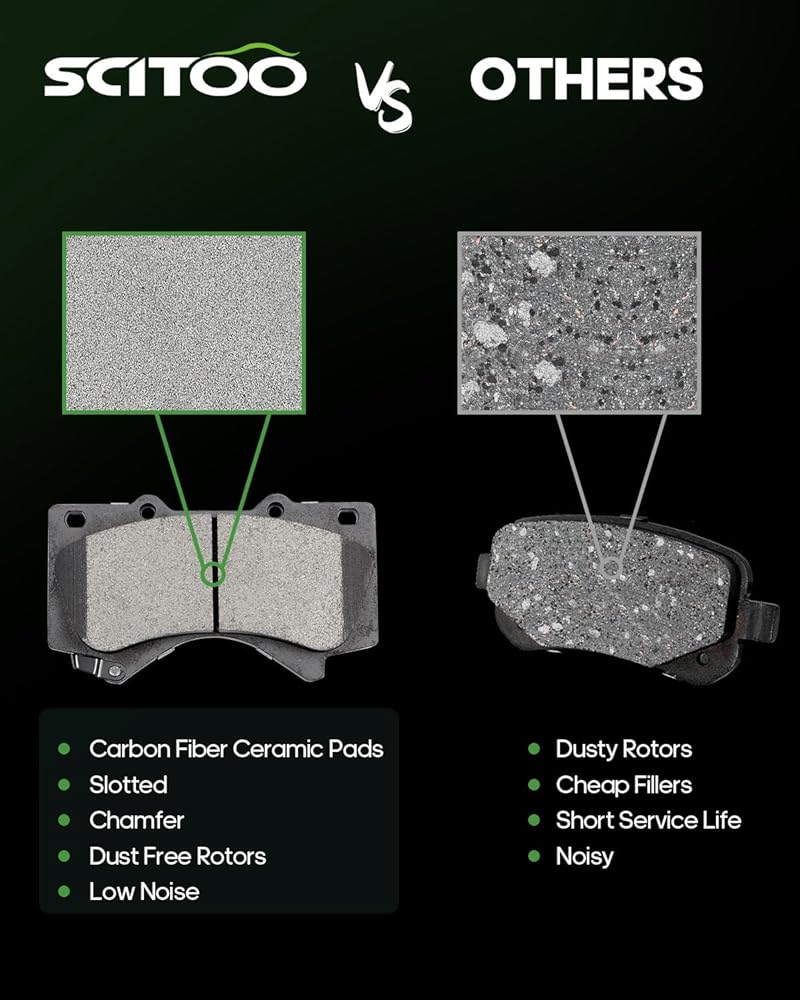 SCITOO Front Rear Disc Brake Pad Sets Fit For 08-11 13-19 For Lexus LX570, 2008-2011 2013-2019 For Toyota For Land Cruiser, 2008-2019 For Toyota For Sequoia, 2007-2019 For Toyota For Tundra