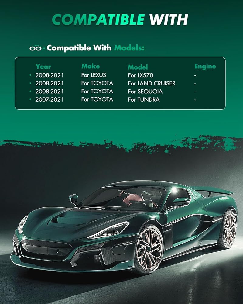 COMPATIBLE VEHICLES - ATD1303C,D1303-8419 ATD1304C,D1304-8420 Ceramic disc brake pad kit for 2008-2011 2013-2019 Lexus LX570, 2008-2011 2013-2019 Toyota Land Cruiser, 2008-2019 Toyota Sequoia, 2007-2019 Toyota Tundra