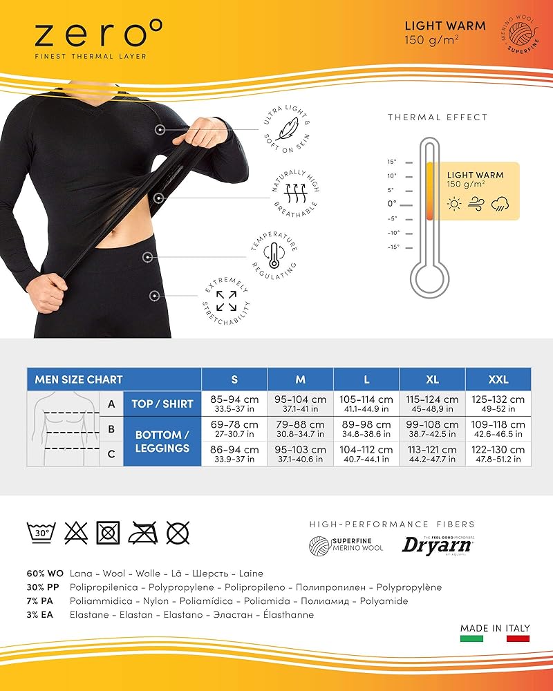 LIGHTWEIGHT AND BREATHABLE – Made with a yarn that ensures unbeatable lightness and breathability. Its exclusive thermoregulating function helps the fabric quickly transfer the moisture generated by the body to the outside of the garment, leaving the skin dry and thermoregulated. This helps you cope with body temperature changes and prevents cold air from passing between skin and fabric