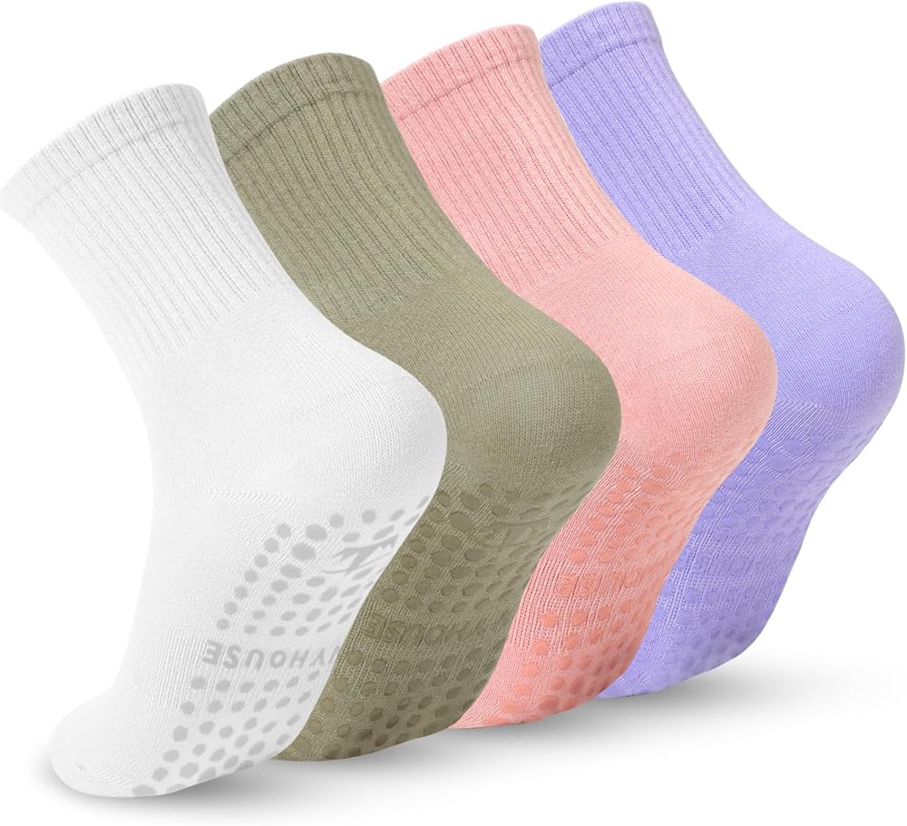 ♥Non Skid Soles♥ -Our yoga socks feature sticky dots on the sole, providing enhanced traction on hardwood floors, tiles, gym floors, or Pilates equipment. This design improves stability and balance, helps prevent accidents, and allows for better control over body movements. The grips are crafted from soft and elastic silicone, ensuring a secure hold for safe gripping.