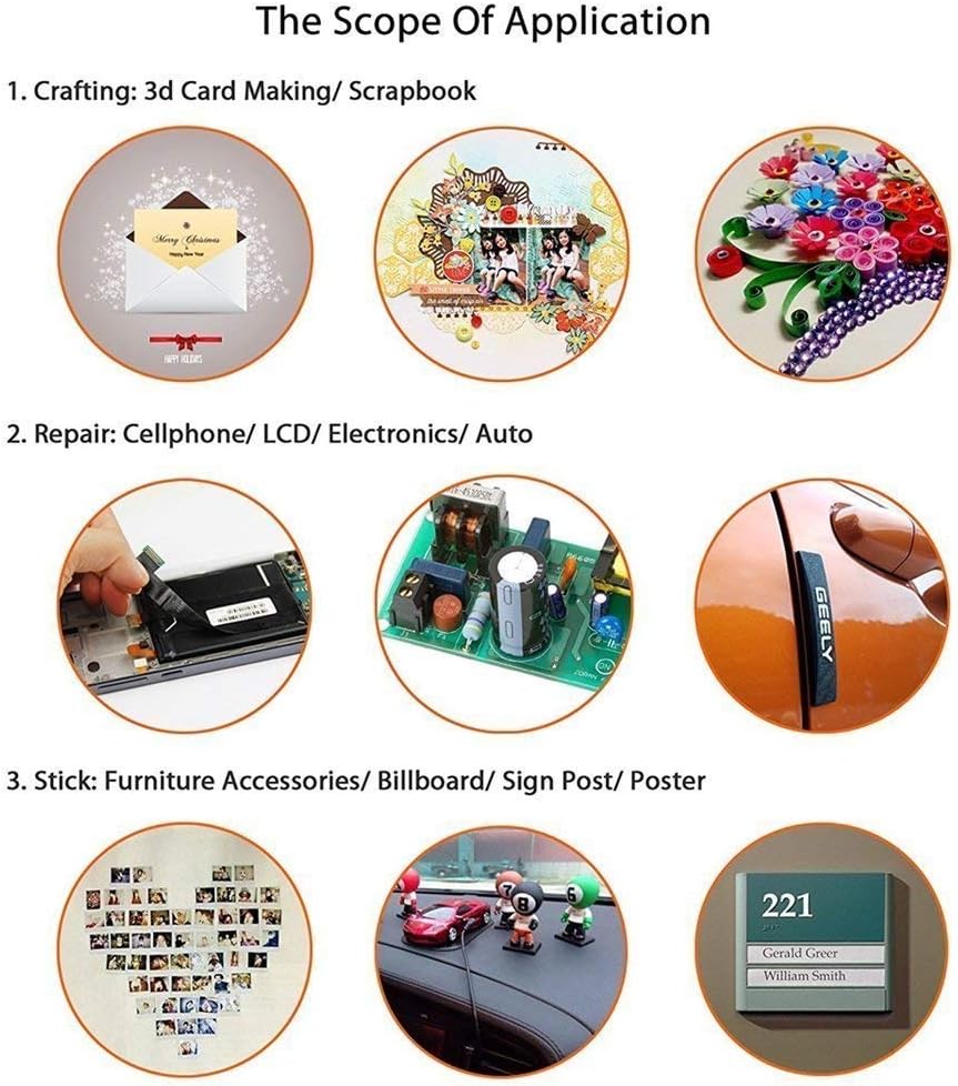 Multiple Application: Widely using for wall mounting, glass mounting, photo mounting, home, room and office decorations, car/ cell phone repair.