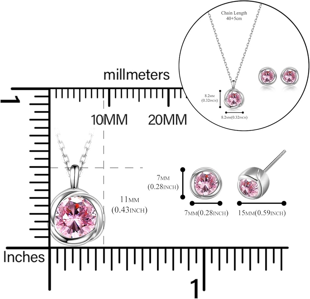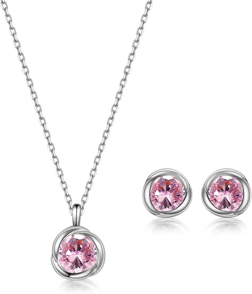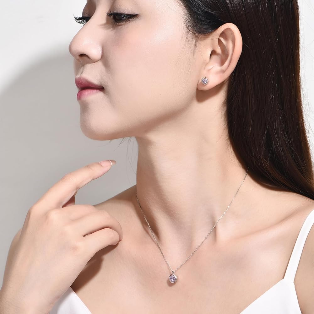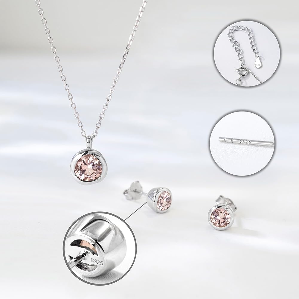 immobird Rose Necklace Jewelry Set in 925 Sterling Silver Birthstone Necklace and Earring Sets for Women Solitaire Necklace with Round Gemstone Gift for Her