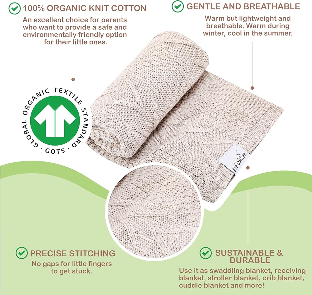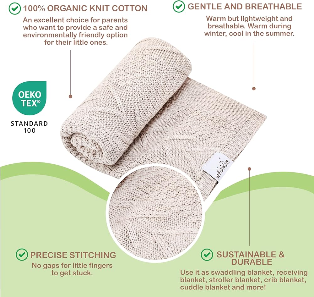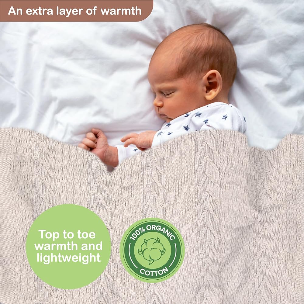 Organic Cotton Knit Baby Blanket 31.5 X 43.3 Inches Soft and Breathable Baby Blanket for Boys and Girls Perfect Swaddle Blanket and Baby Blankets Neutral for Infants Toddlers All Seasons