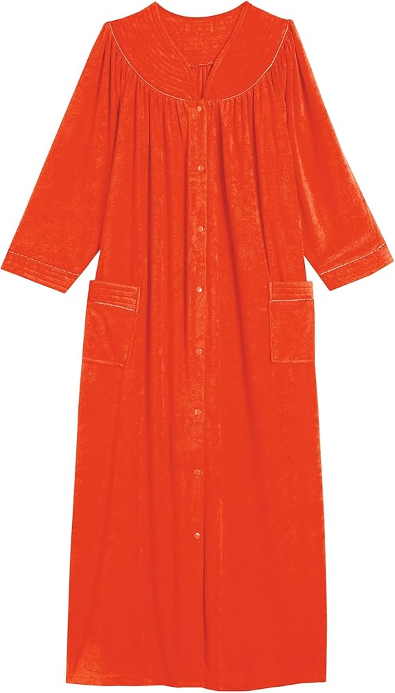 AmeriMark Women Full-Length Snap Front Terrycloth Long Bathrobe – Loose Absorbent Full-Coverage Plush Long Ankle Bath Robe