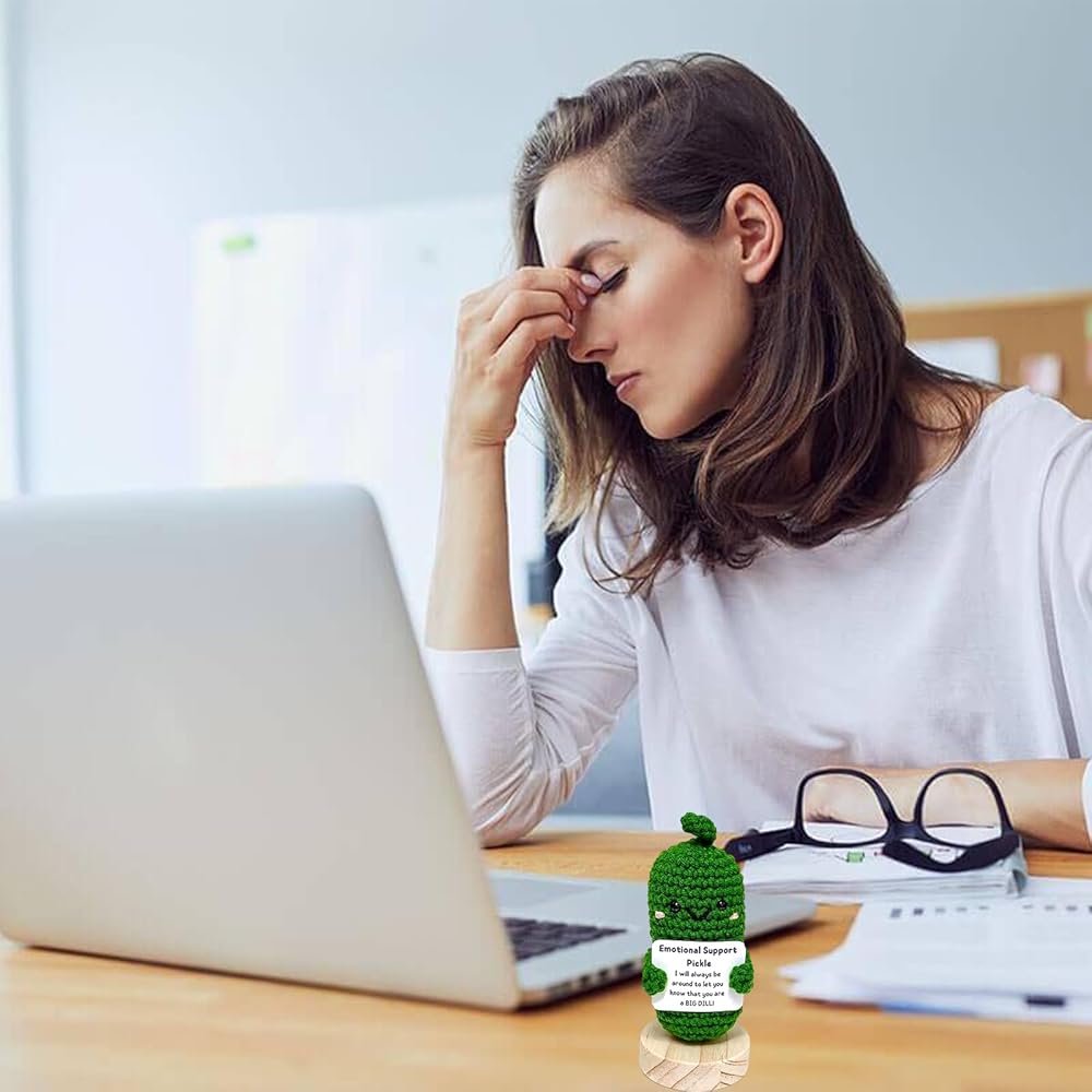 KNIT EMOTIONAL SUPPORT PICKLE CUCUMBER: The Emotional support pickled cucumber knitting doll are handmade with love. When you're feeling stressed, anxious, sad, nervous, this crochet pickle will be the perfect companion to keep on your desk, shelf, or anywhere else.
