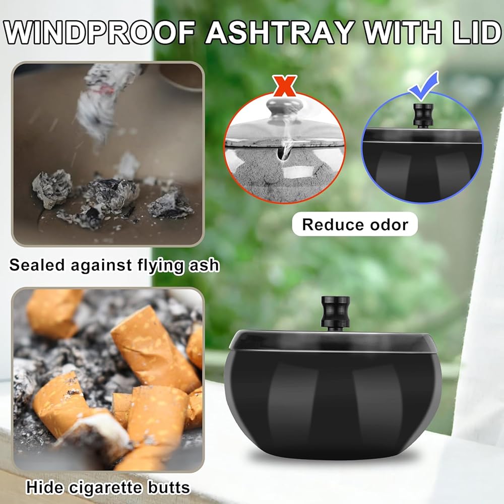Safe from Wind- Comes with a lid to hide the cigarette butts, ashes and smell and prevent anything from blowing out with the wind. Helps to keep the smell of smoke away from all of nonsmokers, and eliminate any ashes or cigarette butts in the yard.