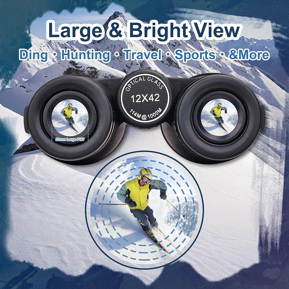 【Powerful】12x42 high-powered binoculars can be magnified by 12 times, providing a large field of vision of 360 feet, clearly seeing the scenery 650 feet away, and observing more specific details.