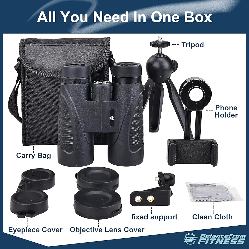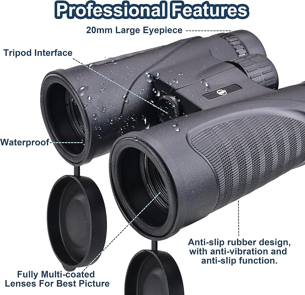 Elevon 12x42 High Definition Binoculars, Binoculars with Large Field of Vision and High Definition, with Phone Adapter, Tripod Adapter and Storage Bag, Suitable for Outdoor Travel and Adventure