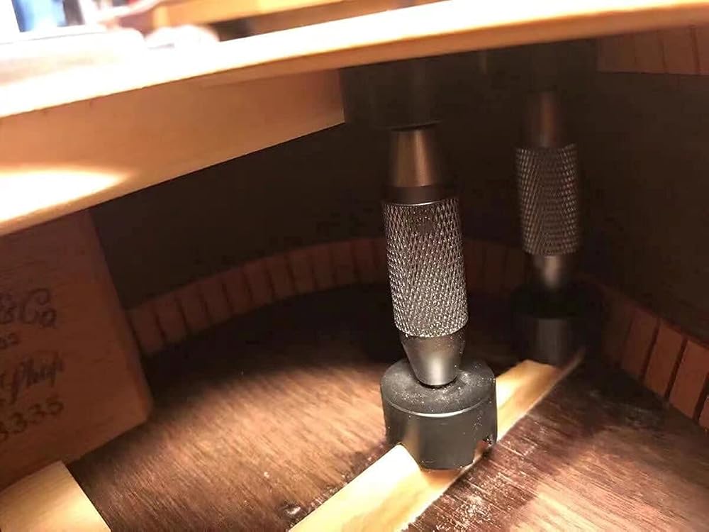 Sturdy machined alloy threads—no wobbling, stays put as you adjust the height, fit the two most common brace profiles: the gentle slope of braces and the more triangular shape found on Gibsons.