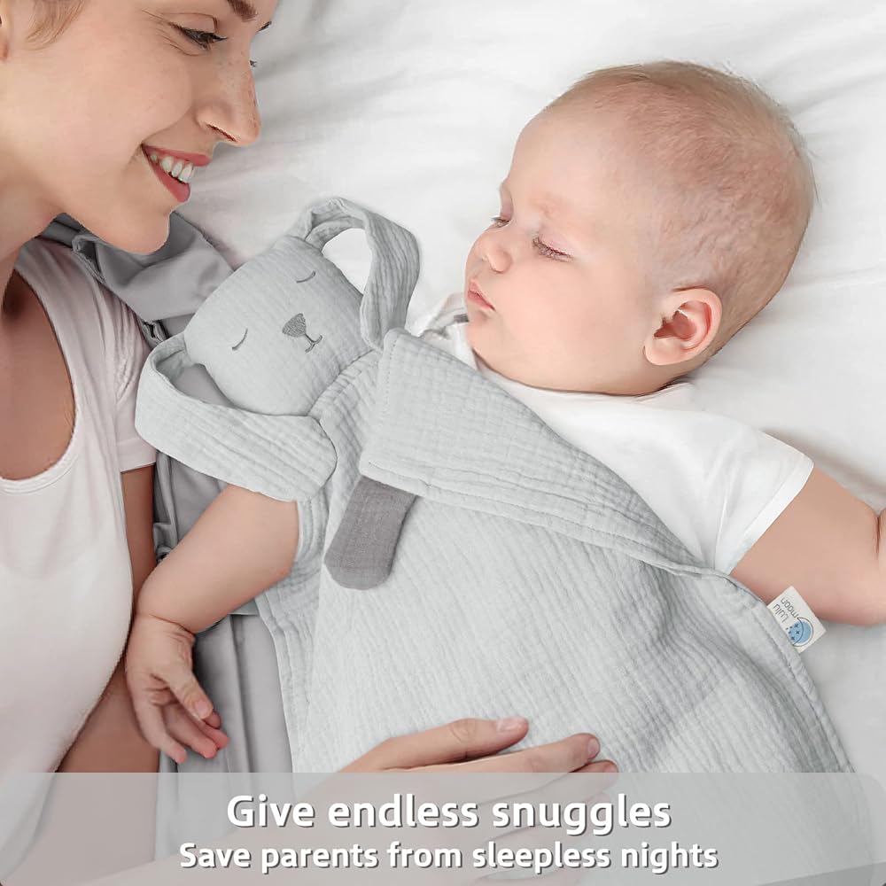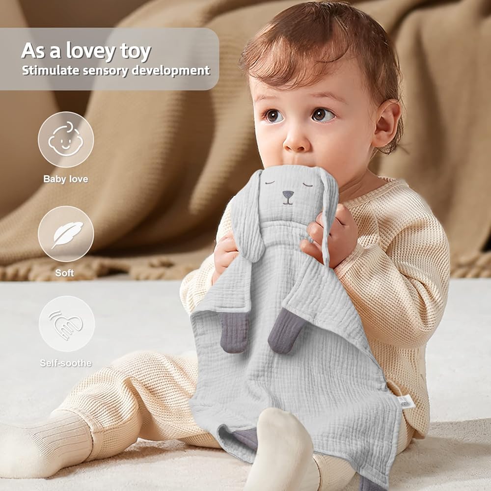 Soft & Comfortable: When baby start to experience separation anxiety, baby security blanket is a transitional object to help your little one feels safe and secure. Our lovey is made from a double layer of 100% cotton muslin, gentle on baby's sensitive skin.