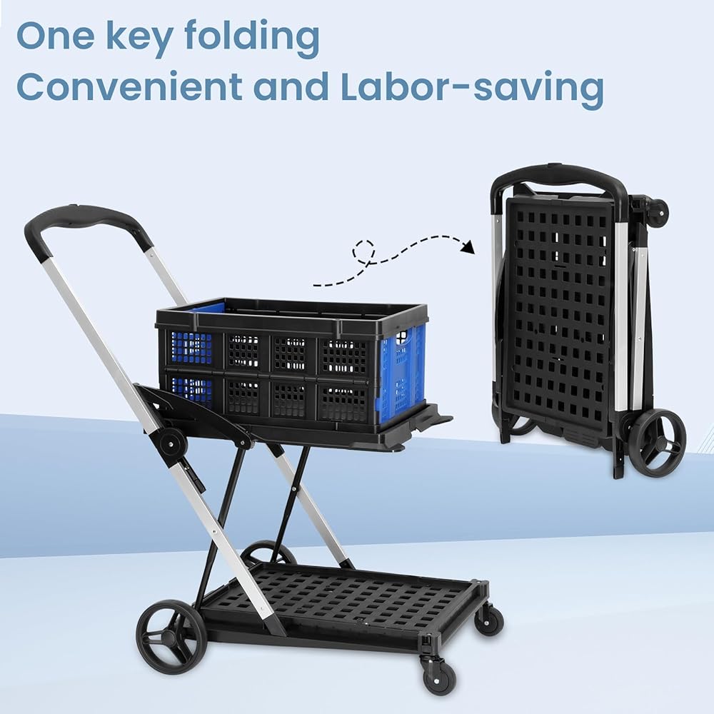 Wide Application:Multi Use Functional Collapsible Carts adopts the design of upper and lower two layers, the carrying capacity is super strong, which can help you realize the role of moving, home daily use of placing fruits and vegetables storage, easy to store and fold, outdoor supermarket use is also very convenient.