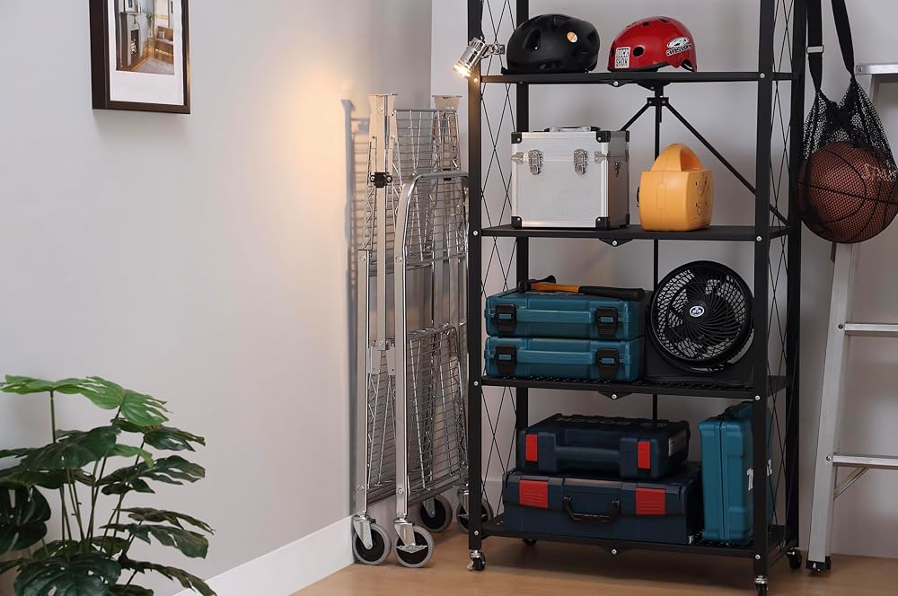 INNOVATIVE STORAGE DESIGN: Forget the constraints of bulky traditional carts. Embrace our innovative heavy-duty rolling cart, engineered for space efficiency. With its ability to fold into a compact size, our steel utility cart effortlessly melds high utility with space-saving design, making storage dilemmas a thing of the past.