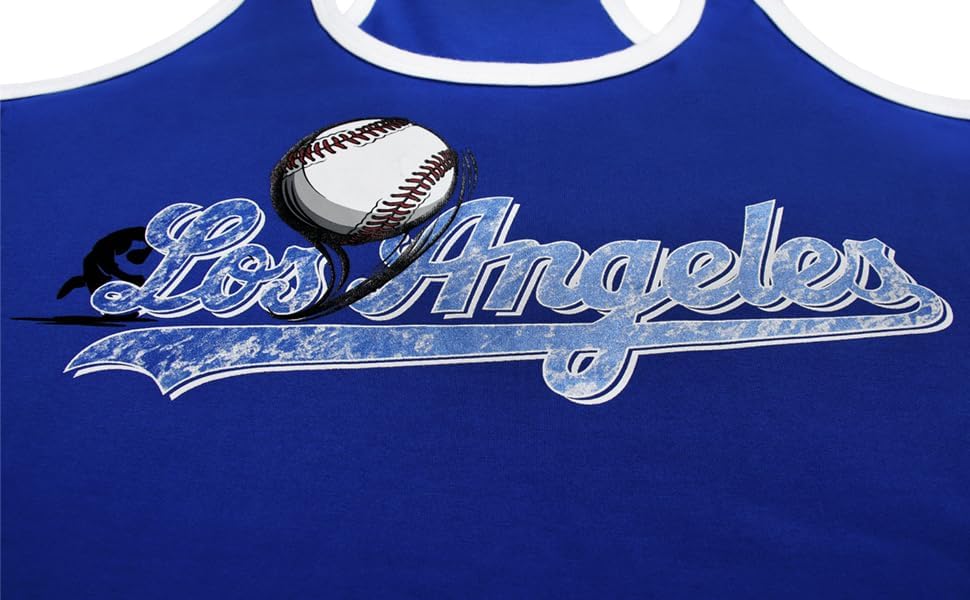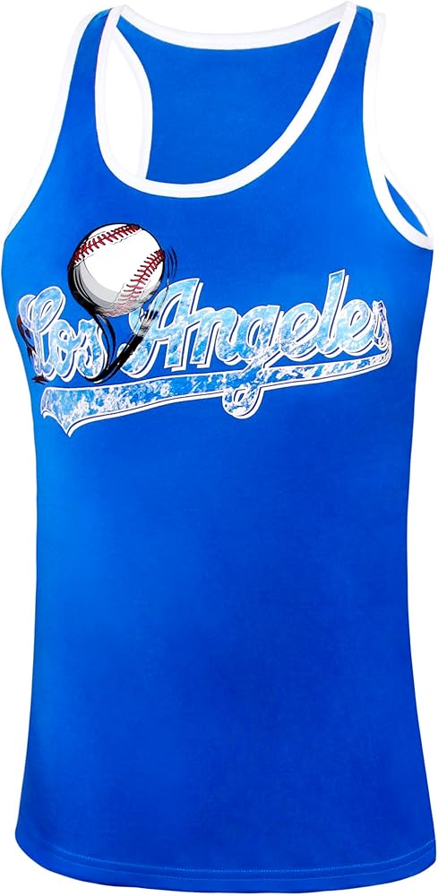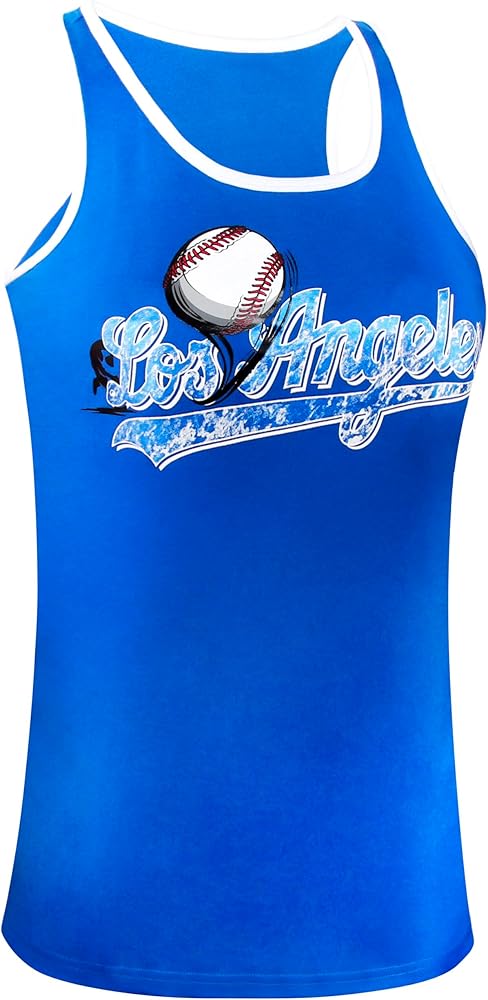 Women City Baseball Fans Athletic Sporty Vest Tank Tops Shirts - Royal & White
