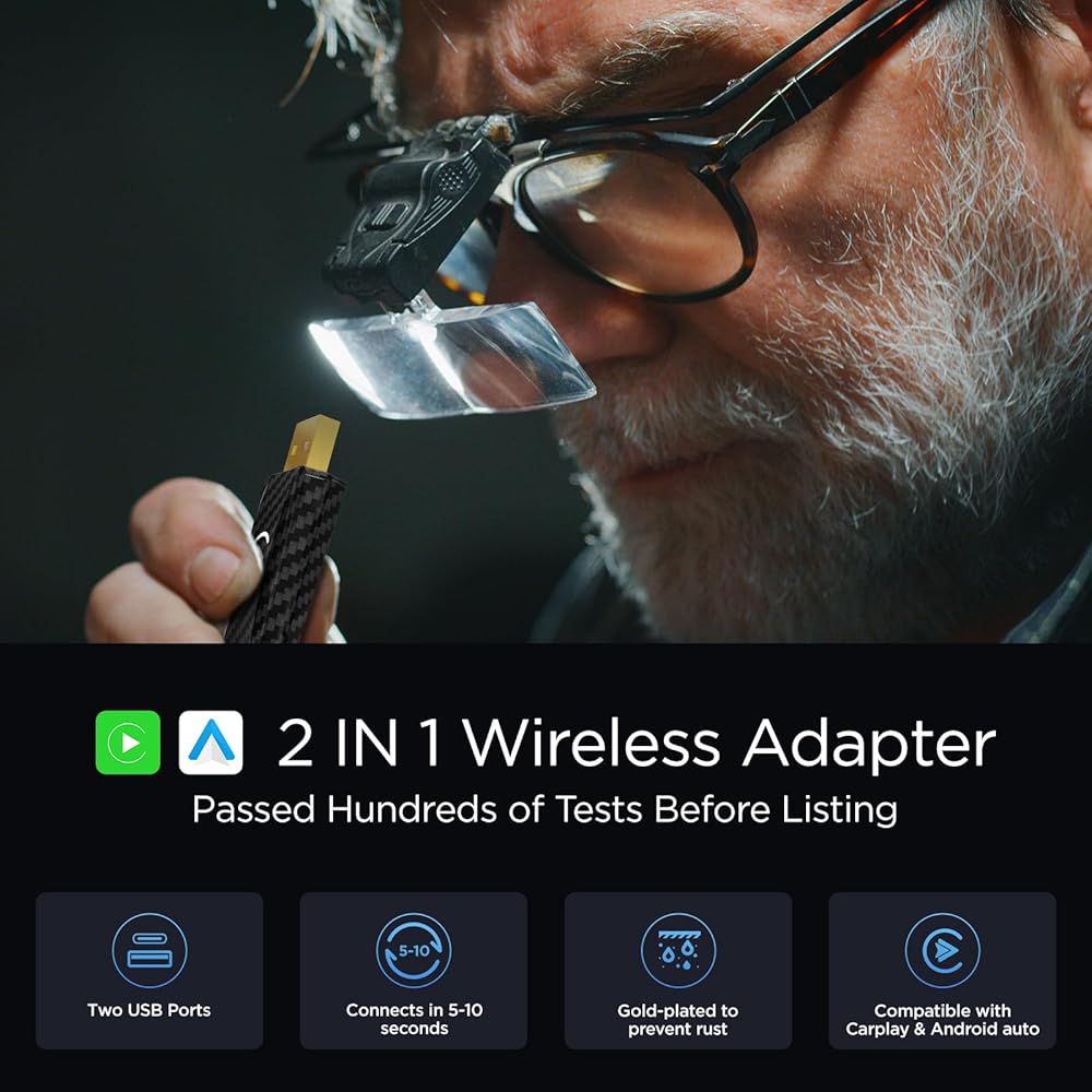 🚗 【2IN1 Carplay & Android Auto Wireless Adapter】 Easily transform your wired Android Auto / Carplay into a wireless experience. No additional drivers or apps are required. Connect your Bluetooth and WiFi, and the Carplay & Android Auto wireless adapter will automatically connect to your phone when you start the car, even if your phone is in your pocket or on a call.