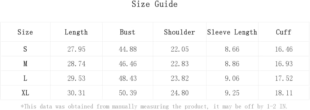 S:Bust:44.9IN,Cuff:16.5IN,Length:28.0IN,Shoulder:22.0IN,Sleeve Length:8.7IN