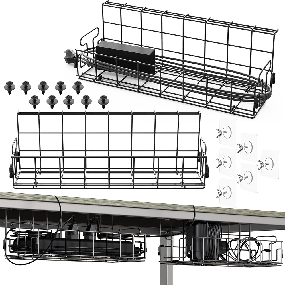 2Pack - SHW Under Desk Cable Wire Management Tray Organizer