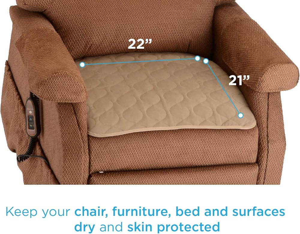 NOVA Waterproof Reusable Underpad for Chair, Seat, Furniture or Bed with Velour Soft Top Layer, Washable Incontinence Seat & Surface Overlay, Super Absorbent, 22" x 21" Size, Brown