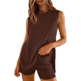 Features: The 2 piece ribbed sets for women is features with sleeveless, high boat neckline, solid color, tunic top, shorts, high-rise design, dropped armholes, vented hemline, flat front and back. Our short sets for women 2 piece definitely will get compliments every time you wear it. It can even be thrown over your swimwear or elevated with sleek boots, this set has endless ways to wear