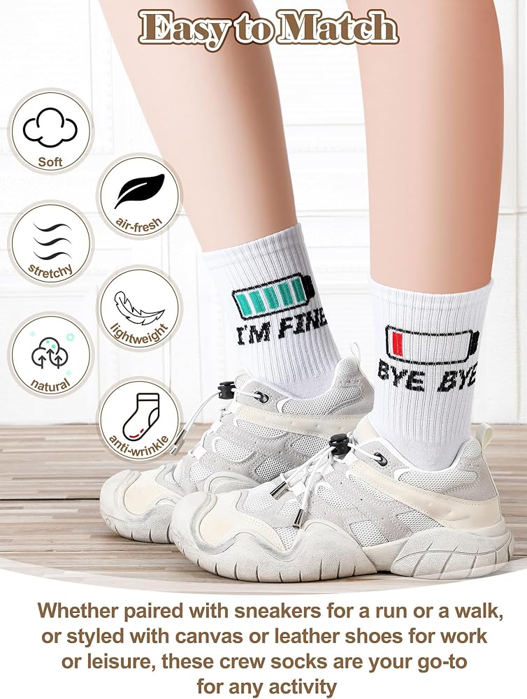 Versatility in Wear: whether paired with sneakers for a run or a walk, or styled with canvas or leather shoes for work or leisure, these crew socks are your go-to for any activity
