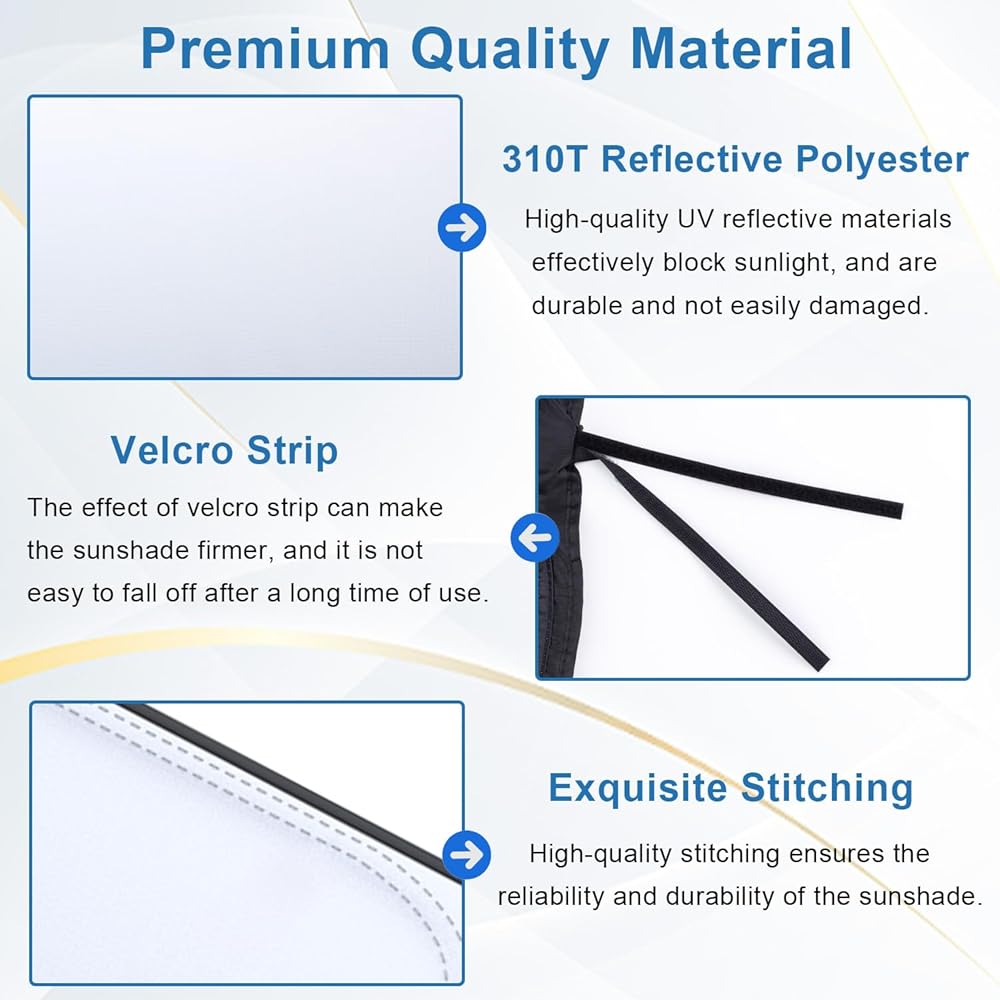 Premium Material: Made of high-quality 310T reflective polyester and uses ultraviolet reflective materials to block the sun and ultraviolet rays.