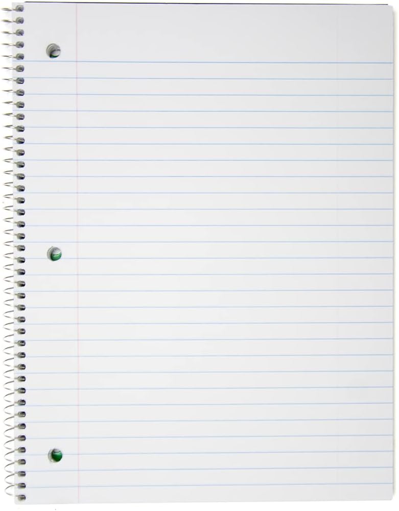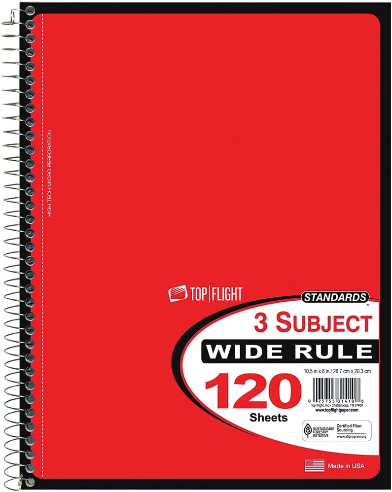 Top Flight 3-Subject Spiral Notebooks, Wide Ruled, 24-Pack – 120 Sheets Each, 3-Hole Punched, Perforated, 10.5 x 8 Inches, 5 Assorted Colors (4511880)