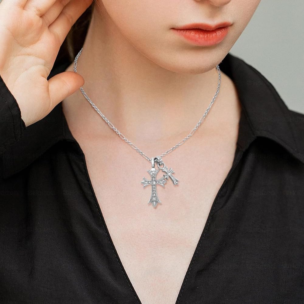 𒆎Premium Materials𒆎--The Double cross necklace is made of 14k silver plating, which is not only fashionable but also comfortable to wear and will not fade. Our gold plating thickness is twice that of the same industry.