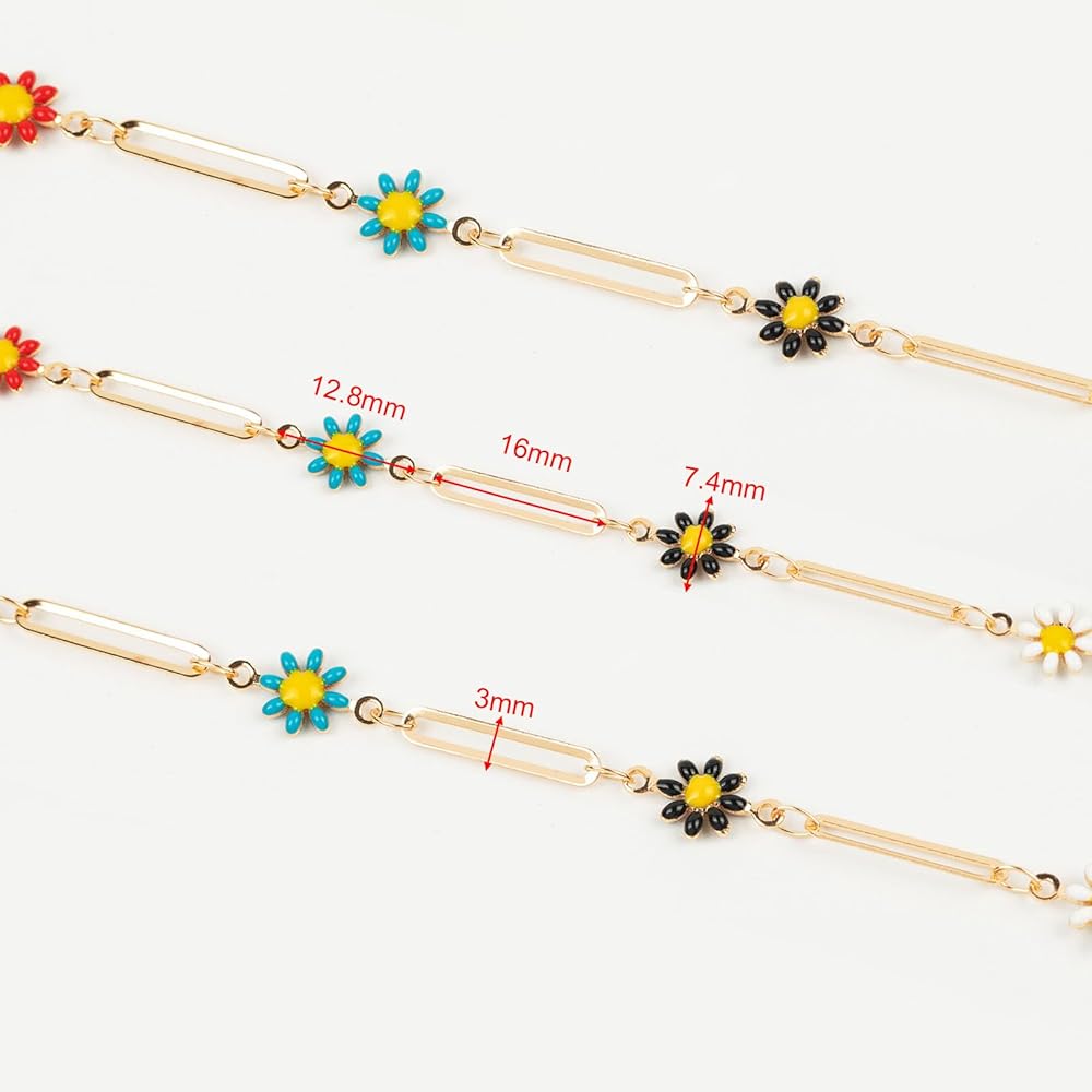 2. Multiple Usages: Multicolored daisy chain for jewelry making, great to diy girls and women necklaces, bracelets, anklets, earrings, belly chains, waist chains, leg chains, thigh chains, and other types of body chains, also can be used as decorative chains to make keychains, eyeglass chains, mask strap chains, pocket chains, purse chains, bag chains, crafts chains, etc. A great gift idea on Valentine's Day, Mother's Day, Halloween, Thanksgiving Day, Christmas, Graduation, Wedding, Anniversary, Birthday, and other special days.