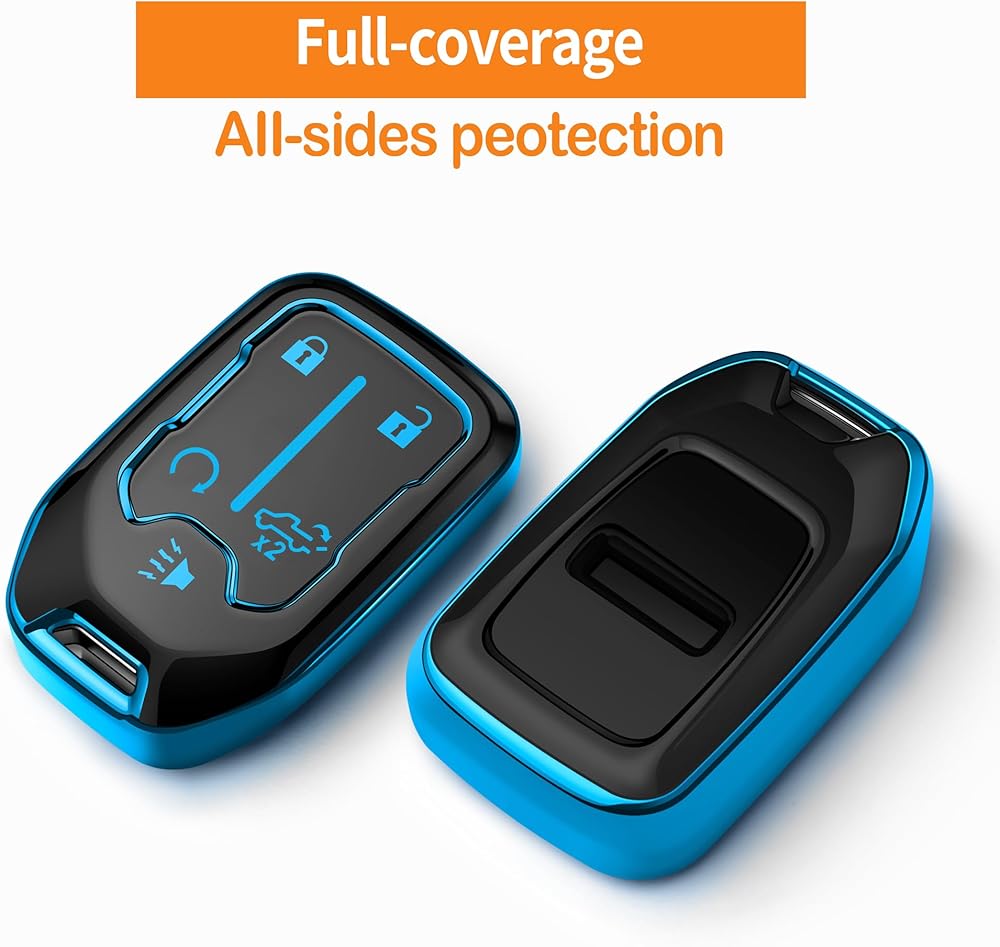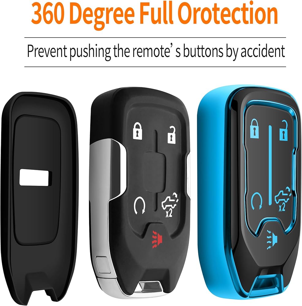 Sindeda for Chevrolet Key Fob Cover with Keychain Soft Full Protection Key Shell Key Case Compatible with GMC Suburban Tahoe Silverado Terrain Yukon Sierra 1500 2500 3500 HD Chevy (Blue, 5 Button)