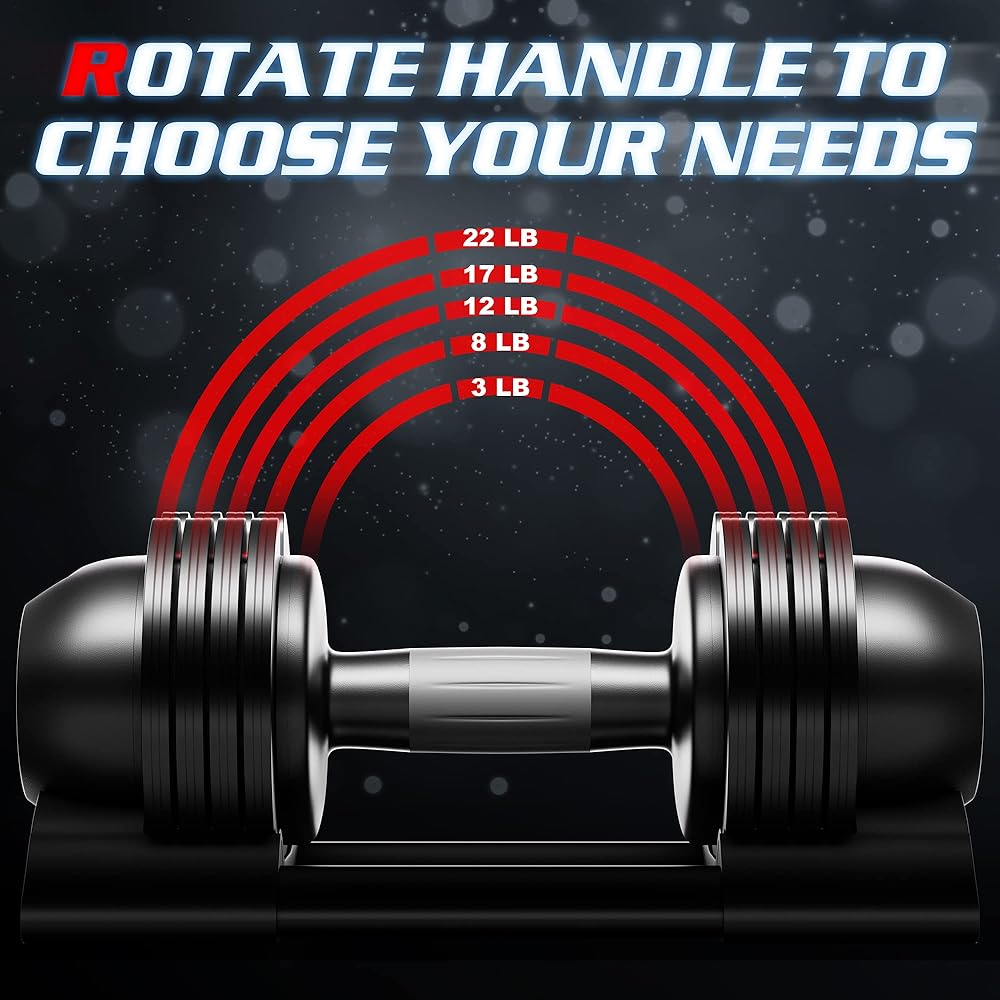 Adjustable Dumbbell,22LBS 44LBS 52LBS Dumbbell Set with Tray for Fitness, Fast Adjust Weight by Turning Anti-Slip Handle, Safety with 8 Lock Slots, Suitable for Men and Women