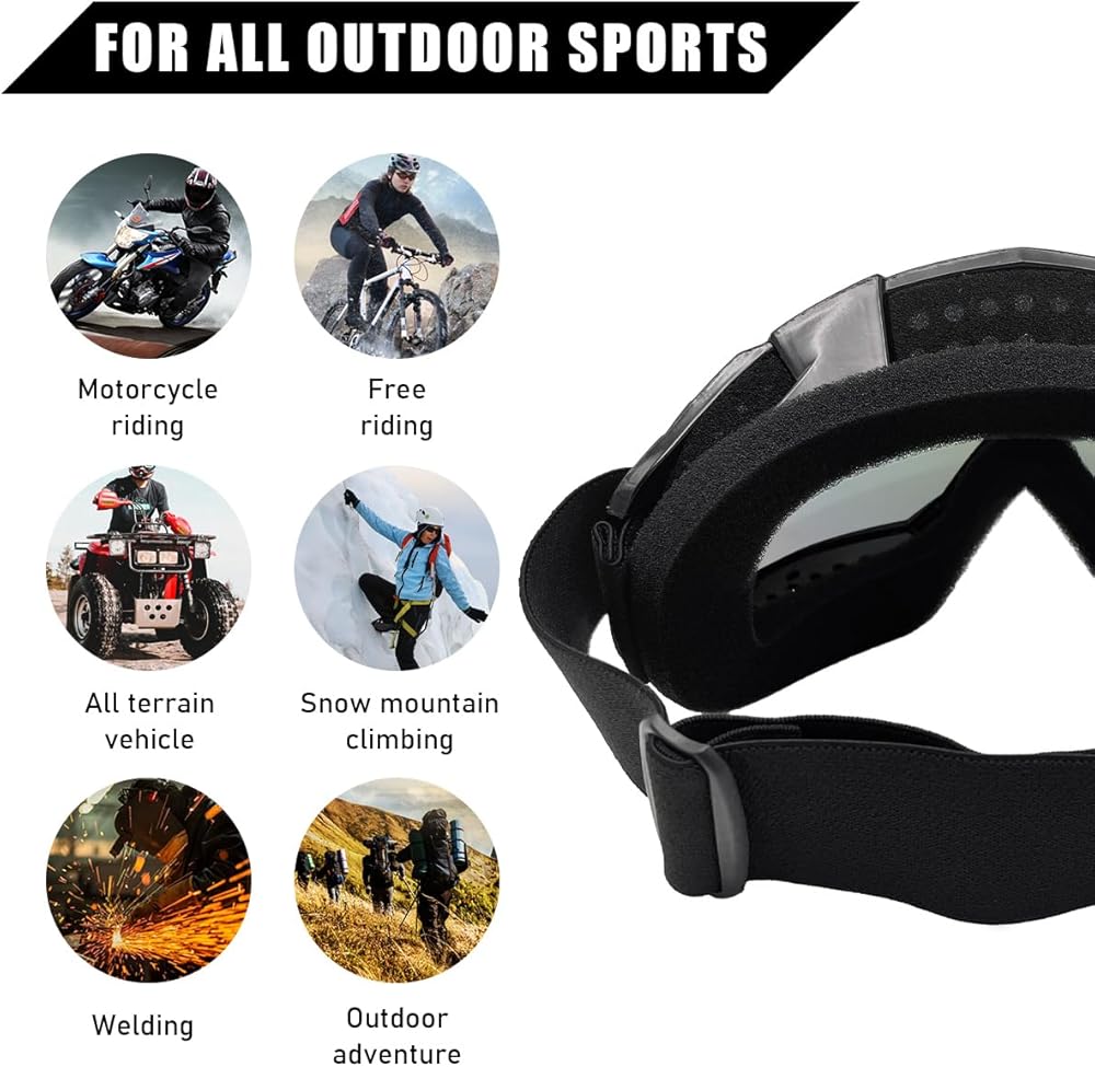 【Wide Application】: These goggles are suitable for many outdoor activities, such as cycling, motorcycle riding, mountaineering, horse riding, etc. You can also use them as sunglasses, racing goggles, skiing goggles and so on. You can use these goggles in most situations where you are concerned about the possibility of eye injury.