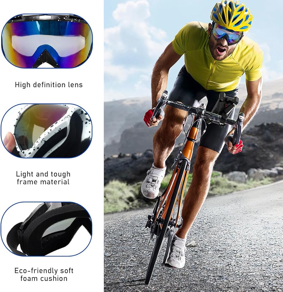 【Durable & Lightweight】: The frame of these goggles is made of TPU material, and the lenses are made of PC material. These materials are very sturdy and durable, not easy to break or deform, and can maintain the color for a long time. Also, these materials are lightweight, which will not bring too much burden to users.