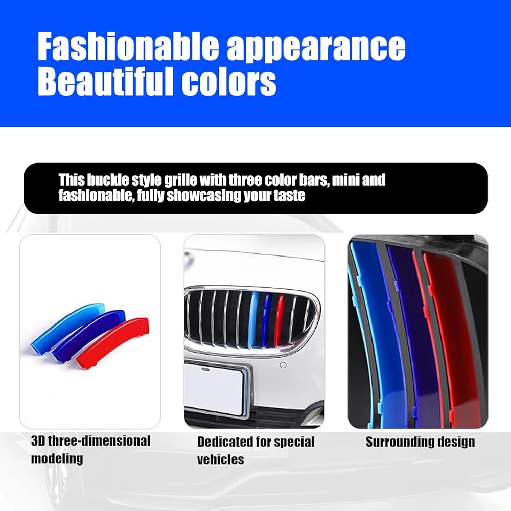 🚖 Package Content: The package contains 3 car grille inserts and the colors are: red, blue, and dark blue. Please carefully check your car model before purchasing to avoid mismatch between the product and your car grille.