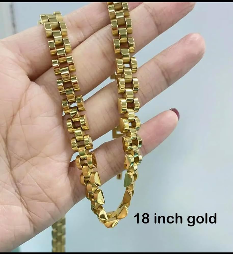 As You Wish Super Noble Surgical Stainless Steel Luxury Looking Golden PVD Vacuum Plating Watch Band Style Linked Necklace size 22inch