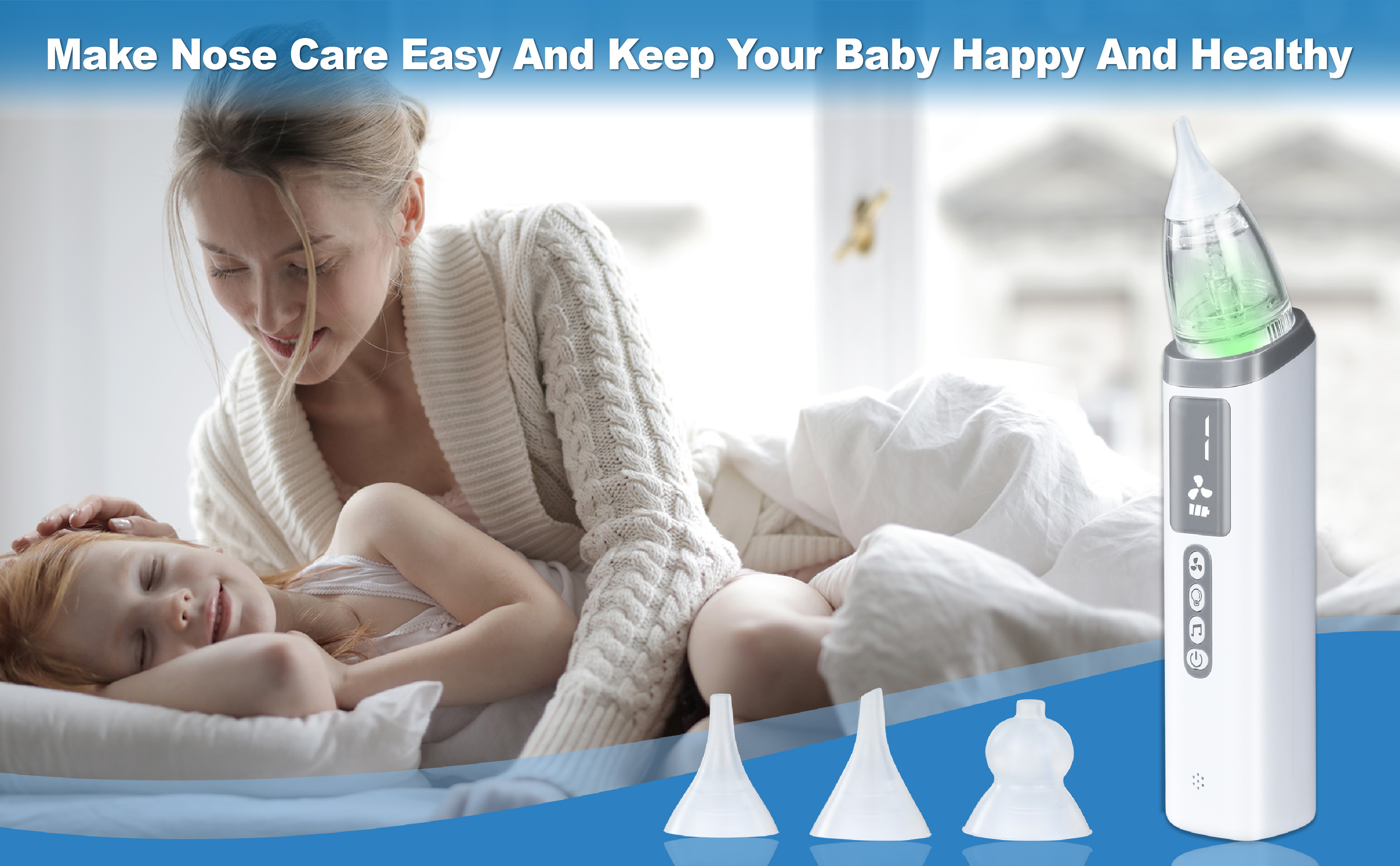 Gentle & Effective: Designed to safely remove nasal congestion,3 different soft silicone tips are gentle on your baby's delicate nostrils, preventing any discomfort during use,ensuring their comfort and well-being.