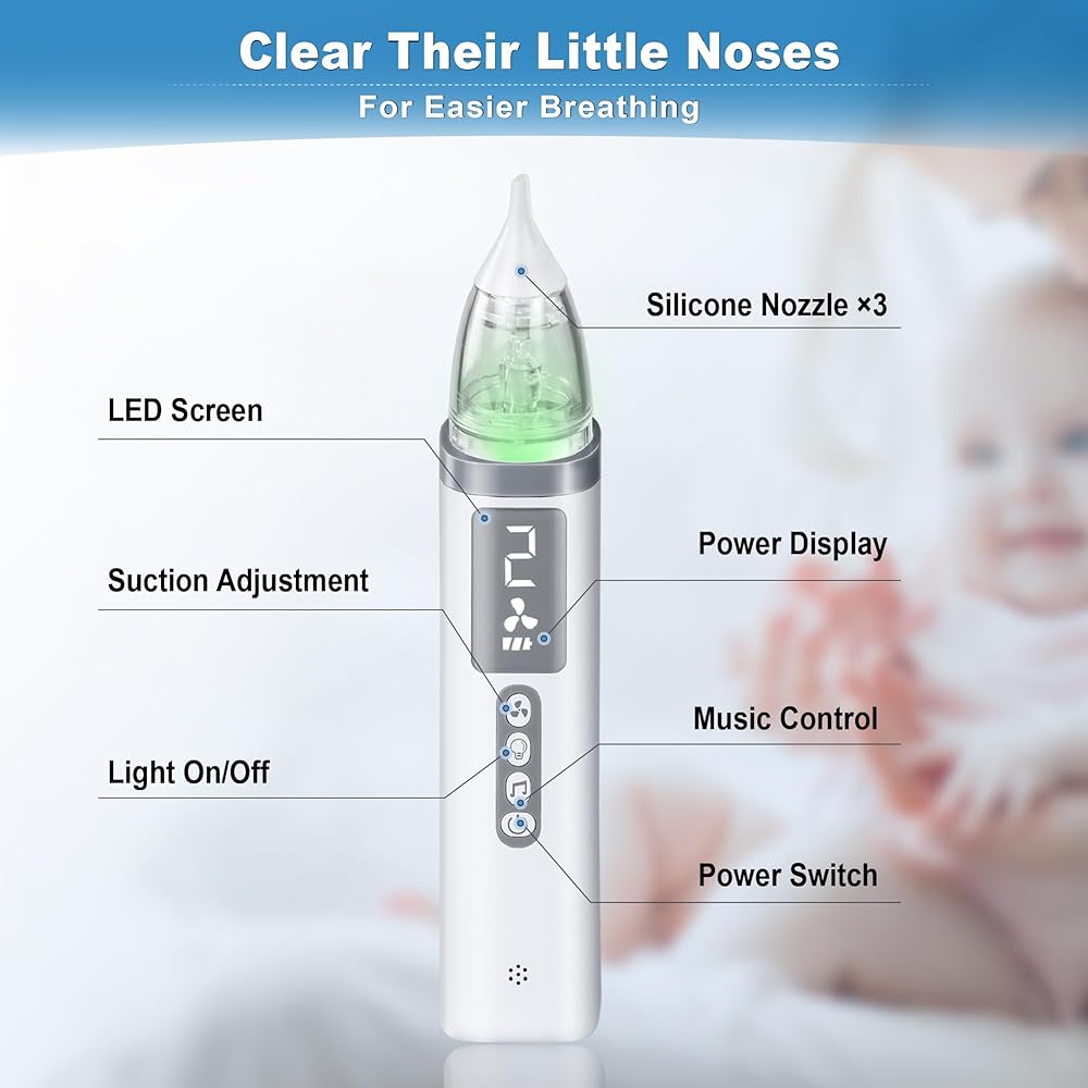 Soothing Light & Nursery Rhymes: This aspirator is designed with a soothing light and plays nursery rhymes,which can help distract your baby and prevent them from fussing or crying.The low-noise nasal aspirator creates a quiet environment for your baby.