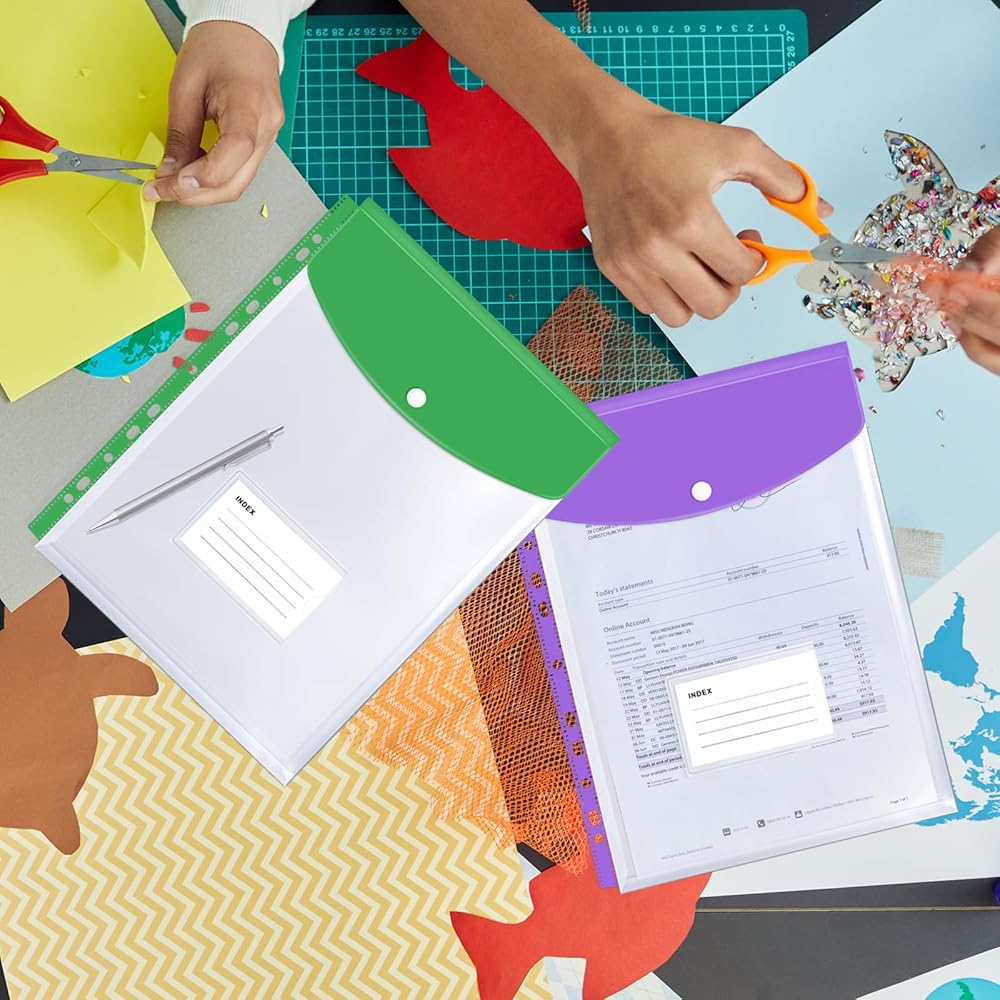 Sufficient Quantity: 12 Binder Pockets, 6 Colors (Pink, Green, Orange, Blue, Purple and Black 2pcs for each color) You can use it to organize and distinguish different files, sufficient quantity and color can satisfy The needs of the office, school or home.