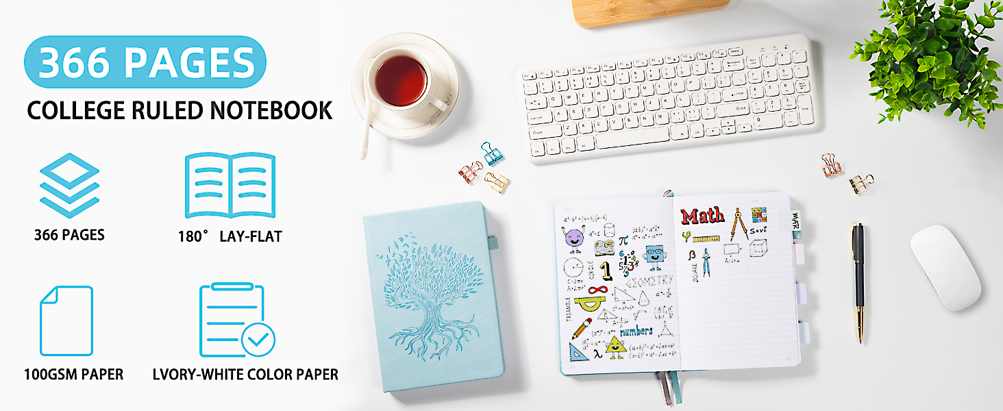 180°Lay-flat Journal for Writing: The notebooks lies flat when opened, makes it easy to take notes with both hands, easier to write.