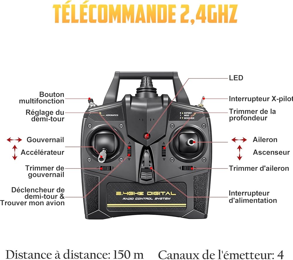 𝐑𝐞𝐚𝐝𝐲 & 𝐄𝐚𝐬𝐲 𝐭𝐨 𝐟𝐥𝐲 - Built-in 6-axis gyro stabilization system, this RC plane is easy to fly. A beginner will learn to fly it just after hours of practice.